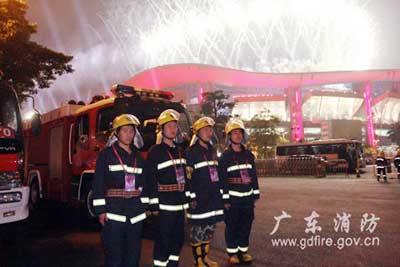 12月12日,广东省共调动消防警力654人、消防车辆51辆。其中,奥体中心开幕式现场部署重兵504人、消防车26辆。同时调动佛山、东莞、中山消防支队和省消防总队直属特勤大队等4个单位150名官兵,25辆消防车集结广州周边,随时待命,应对突发事故。