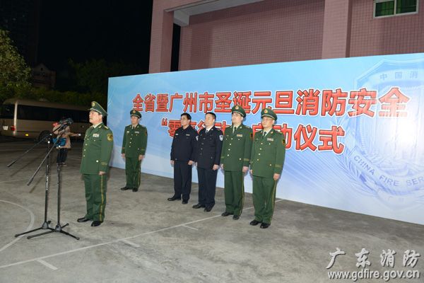 在启动仪式上,王郭社总队长对零点行动进行了动员部署。他指出,广东是经济大省、人口大省,公共娱乐场所多,平安夜、圣诞夜期间群众娱乐活动多,火灾危险性大,历来是火灾防控的重中之重,各级一定要保持清醒的头脑,集中精力,全力以赴,深入扎实地开展好零点夜查行动,确保消防安全形势稳定。各地要以酒吧、歌舞厅、KTV、演出放映等公共娱乐场所,以及商场、市场等人员密集场所为重点,组织开展检查,重点查处公共娱乐场所超员经营,违规在室内使用明火、燃放烟花爆竹,疏散通道、安全出口锁闭,自动消防设施损坏等消防安全隐患,保持执法高压态势。各级既要依法履行消防监督检查职责,又要强化服务意识,充分发挥宣传员、辅导员的作用,切实提高社会单位的消防安全管理水平,为广大人民欢庆节日创造一个良好的消防安全环境。同时,王郭社总队长还呼吁社会和广大人民高度重视消防安全,共同关心、关注、维护、促进社会消防安全,确保节日期间平安全稳定。